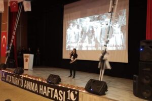 Anma programı, Kültür ve Kongre Merkezi’nde devam etti. Burada Şehit Harun Aslan Mesleki ve Teknik Anadolu Lisesi Müdürü Celal Efe, Atatürk’ün hayatı ve eserleri hakkında bir konuşma yaptı.
