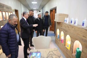 Ziyaret sonunda Kökrek, konuklarına “Nuh’un Gemisi” şeklinde tasarlanan kütüphaneyi ve TOBB Mesleki ve Teknik Anadolu Lisesi Kimya Teknolojisi bölümü öğrencileri tarafından Ağrı Dağı markasıyla üretilen hijyen malzemelerinin sergilendiği stantları gezdirdi. Kökrek, Ağrı Çalışan Gazeteciler Cemiyetinin çalışmalarında başarılar diledi.