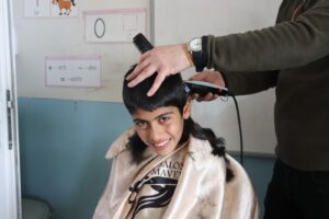“Bazı abiler ve ablalar geldi. bizlere çeşitli hediyeler ve yiyecek şeyler getirdiler. Gelen ablalar saçlarımızı kestiler ve taradılar. Daha önce bir kere Ağrı’da kuaföre gitmiştim. Şimdide okulda saçlarımızı yaptılar. Çok mutlu olduk. Abiler ve ablaları çok teşekkür ediyorum.”