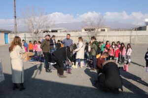 Yaptıkları çalışmalar hakkında bilgi veren Mimar Lütfü Yiğit: “Bu günde Ağrı Dağı’nın Eteğinde bulunan çok güzel bir köyümüzdeyiz. Köyümüz Ağrı merkeze 135, Doğubayazıt ilçe merkezine ise 15 kilometre uzaklıkta. İran sınırına yakın bir köy. Bu gün kız çocuklarını burada ilk defa kuaförle buluşturmak istedik. Ağrı merkezde faaliyet gösteren kadın ve erkek kuaförlerimiz bizlere eşlik etti. Ayrıca çocuklarımıza hayırseverlerin gönderdiği çeşitli hediyelerde getirdik. Bu hediyeleri bizlere gönderenlere çocuklar adına çok teşekkür ederiz. Bu gün burada 45 öğrencimize ulaştık. Onları hem soğuk kış günlerinde ısıtmak hem de mutlu etmek istedik. Şimdiye kadar 80 köy okulumuza ulaştık ve hedefimiz 100 okuldaki öğrencilerimize ulaşmak. Bizim amacımız burada çocukları mutlu etmek. Onlara yalnız olmadıkları hissettirmek. Kuaförlerinde bu konuda onları daha mutlu edeceğini düşündük. Çünkü biliyorsunuz özellikle kız çocukları bu konularda daha hassaslar. Buradaki çoğu kız çocuğunu ilk defa kadın kuaförle buluşturmak istedik.” Dedi.