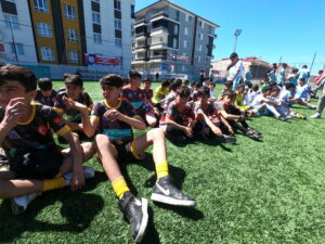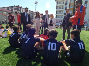 Vali Osman Varol’un eşi Funda Varol ve Dinçer’in başlama vuruşunun ardından ilk maç özel eğitim öğrencileri ile IC Elit Akademi öğrencileri arasında yapılan gösteri maçıyla başladı.