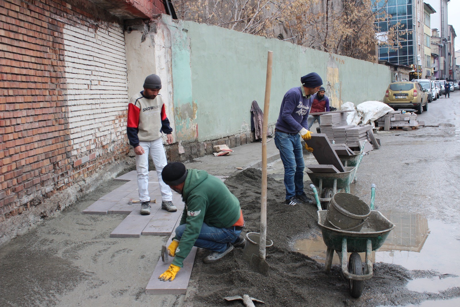 Ağrı’da kent merkezinde bozulan kaldırımları yeniden düzenleme çalışmaları yapan Ağrı Belediyesi’ne bağlı işçiler, soğuk havalara rağmen çalışmalarını aralıksız sürdürüyor.