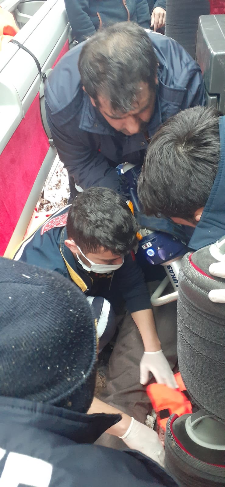 Otobüsün içinde sıkışan bir yaralıyı kurtarmak için sağlık ve itfaiye ekipleri seferber oldu. Yaralı, uzun uğraşlar sonucu bulunduğu yerden çıkarılarak hastaneye kaldırıldı.