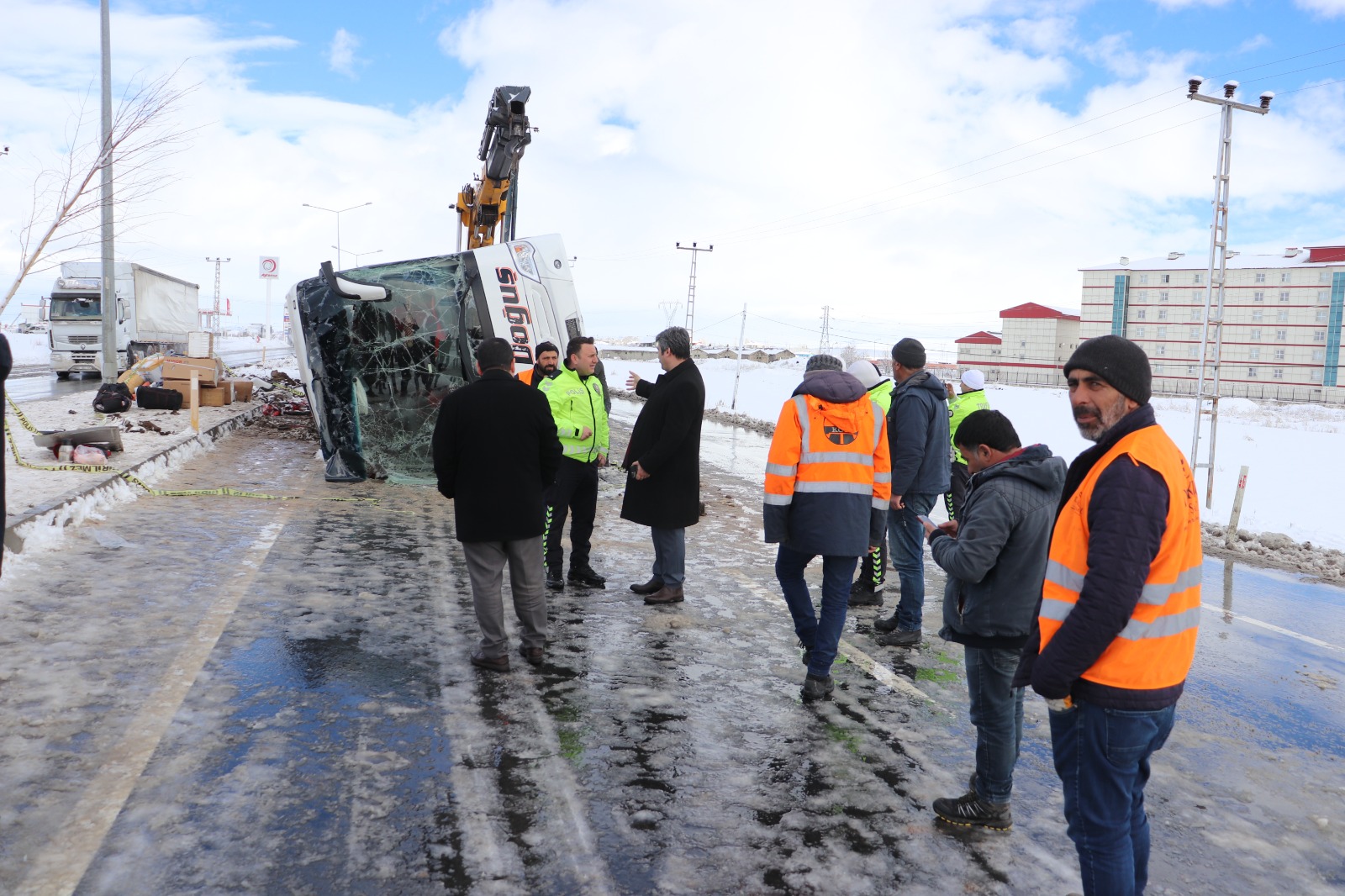 Bu arada kaza sebebiyle Ağrı-Erzurum karayolu tek şeritten verildi. Devrilen otobüsün vinç yardımıyla kaldırılması sonucu karayolunda trafik normale döndü.
