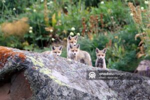 Bir kayanın üzerine çıkan tilki yavruları, bir süre çevreyi izledikten sonra gözden kayboldu.