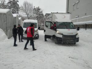 Cadde, sokak ve yollar kardan dolayı kapanırken, deprem bölgelerine sabahın erken saatlerinde hareket etmeye çalışan ekipler hareket etmekte güçlük çekti.
