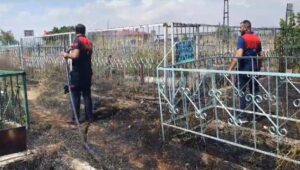 Mezarlığı ve çevresinde henüz bilinmeyen nedenle yangın çıktı.