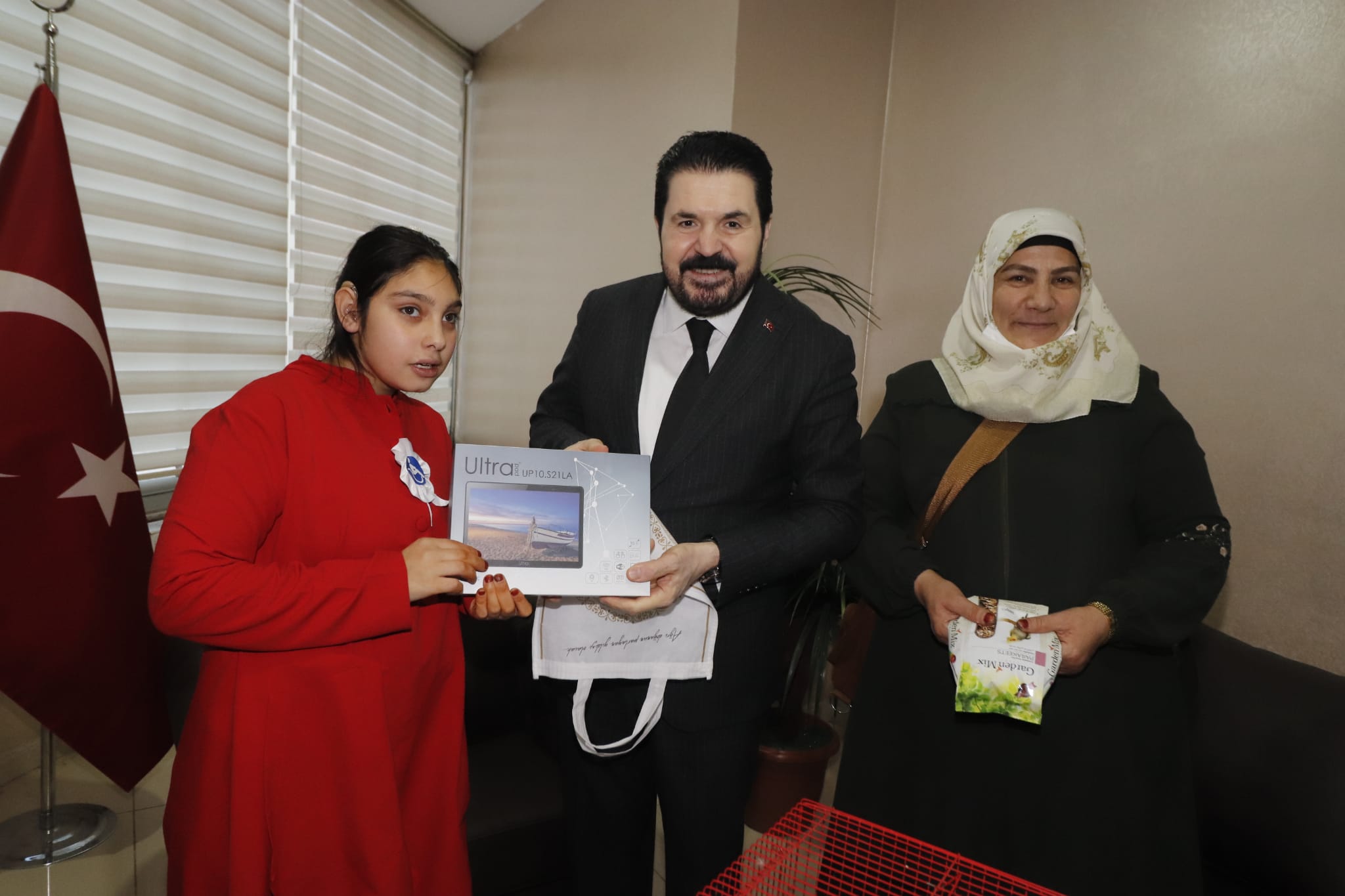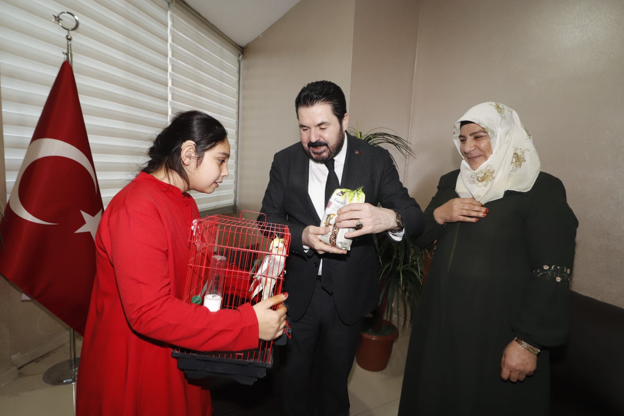 Elifnur’un istediği papağanı program sonunda Elifnur’a sürpriz yaparak veren ve birde tablet hediye eden Başkan Sayan, kendisinden dua istedi.