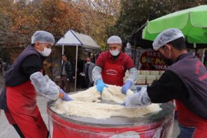 Kocaeli’den gelerek İzmit’in meşhur tatlısı olan pişmaniyeyi Ağrı’da tanıtmak ve yapımını da göstererek içinde herhangi bir katkı maddesi olamadığını gözler önüne sürmek isteyen Pişmaniye ustası Sinan Alyaprak ve ekibi, şehir şehir gezerek üretimini yaptıkları pişmaniyeyi halka tanıtıyorlar.