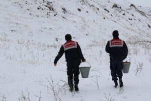 Ağrı’da, jandarma personelleri tarafından dondurucu soğuklarda yiyecek bulamayan yaban hayvanlarına yiyecek bırakıldı.