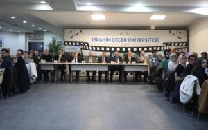 AİÇÜ Merkezi Yemekhanesinde düzenlen programa AİÇÜ Rektörü Prof. Dr. Karabulut’un yanı sıra Rektör Yardımcısı Prof. Dr. Faruk Kaya, Rektör Danışmanı Doç. Dr. İbrahim Özgül, Fakülte Dekanları, akademik, idari personel ile birlikte kulüp danışmanları ve temsilcileri katıldı.