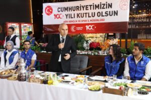 Ağrı Valisi Mustafa Koç, Ağrı Gençlik ve Spor İl Müdürlüğünce Cumhuriyetin 100. Yılı münasebetiyle organize edilen programda gençlerle bir araya geldi.